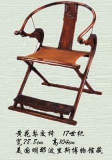 1996年,美国纽约佳士得公司拍卖过一只黄花梨交椅,这只交椅记录非常好,很多人都去参加竞拍,最后被美国一个富翁以50多万美金买下。后来捐给美国明那波里斯(Minneapolis)博物馆。明那波里斯是美国中部的一个城市,这个富翁的家乡。明那波里斯博物馆接受了如此重要的捐赠,非常高兴,设了一个专门的展区,把交椅放在中间,供大家参观。对于美国人来说,这椅子太新鲜了,造型优美,还可以折叠。美国人对文物的态度,跟我们有点儿不一样。美国人希望参观者能够更加亲近展品,于是就允许每个人都坐上去试一试。这是他们做出的一个后来看来很错误的决定。