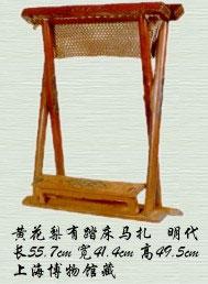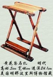 我们是席地而坐的民族,游牧民族带给我们很多耳目一新的东西。当时我们坐在地上,游牧民族的兄弟们翻身下马,从马背上打开一个扎捆的东西,坐在屁股底下,这个东西就叫马扎,意思是马背上扎捆的东西。至今这种家具我们还在应用,出去乘个凉,聊个天,拿个马扎最方便。这么一件历史久远的家具,影响了我们的生存状态,改变了我们的起居方式。