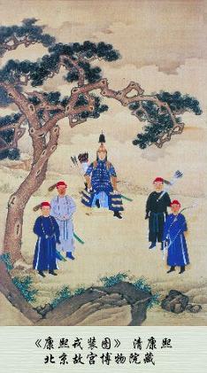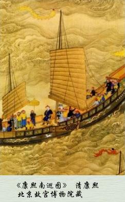 由于交椅可用于打猎时携带,所以还有一个名字叫做“猎椅”。当皇帝出行、打猎的时候,得有人扛着椅子,累了让皇帝歇着,别人不能坐。在清代的宫廷绘画中,我们可以看到打猎的康熙皇帝坐在交椅上,随从都拿着弓箭站在他周围。《康熙南巡图》上也有这样的场景:康熙在船上坐着交椅,其他人都站着。