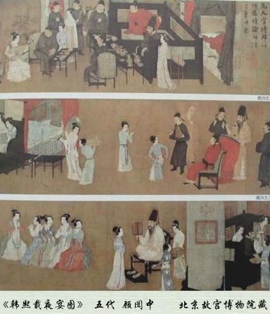 著名的《韩熙载夜宴图》,了解中国绘画史的人都知道这件国宝。在这幅画里,韩熙载五次出现,三坐两站。其中有一次是盘腿坐在椅子上,盘腿坐是一个习俗。比如在陕北乡下呆惯的人进了城,他总愿意蹲着,因为他从小习惯了,他觉得坐在沙发上不舒服。韩熙载也是这个情况,即使地位很高,让他垂足而坐,他也不很舒服,所以要盘腿坐在椅子上。这幅画充分证明了我们改变起居习惯的一个中间过程。