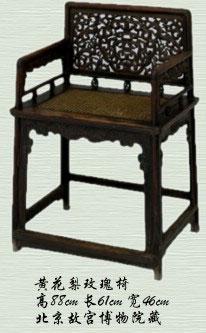 那么还有一种椅子还有意思,它的名字非常俗,今天叫玫瑰椅,玫瑰是一种花,叫玫瑰椅,很多时候,人们在探讨这名字怎么来的?我们的椅子,刚才说了圈椅很形象,官帽椅也很形象,这玫瑰椅就没形象了,玫瑰椅早期的形象,是靠背和扶手是齐平的,到了明代以后,就定型为这样,它是在所有的椅具中,最矮的一种椅具,一般情况下,它的靠背高度,不高于窗台,不挡光,搁在窗户跟前,临时坐一坐不挡光。玫瑰呢,这个词最早是指美玉,玉器,我们将来讲玉器的时候可能要讲到这些,那么后来才只 是一个花名。