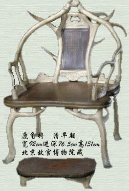 禅椅是很特殊的一种椅具,一般人很难见到实物。但更难见到实物的是什么呢?鹿角椅。除了上故宫,没有人收藏过。鹿角椅是满清皇家专用的椅具。皇帝用他亲手打来的鹿,命造办处的工匠造了这种椅子。从皇太极开始一直到嘉庆,除了雍正,每个皇上都打过鹿,都做过这样的椅子。沈阳故宫有一把鹿角椅,是皇太极用的,那时还没入关呢。故宫和避暑山庄里都有,八国联军来了以后损失了很多,现在故宫里大概还剩下四把鹿角椅。