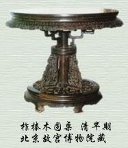 我国古代的圆桌也有多种形制,比较常见的是独腿圆桌,南方人俗称“百灵台”。为什么叫百灵台呢?养过百灵鸟的人都知道,它的特性是不上架,老在地上跑。所以在鸟笼子当中要立起一个圆台,百灵鸟才能站在上面引吭高歌。我们的桌子叫“百灵台”,是一种很形象的叫法,而且也显得非常有诗意。