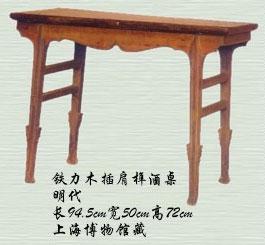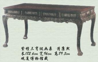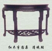 还有半圆桌,主要用于陈设,造型非常优美。这种半桌能够很好地增加室内的装饰气氛,有三足的,也有四足的。两个半圆桌也可以拼成一个圆桌。