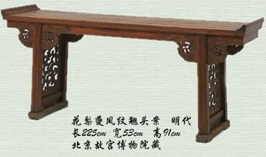 我在福建莆田的一个祠堂里,曾经看过一张非常大的黄花梨案子。福建人的宗祠观念特别重,所以每个村里都有宗祠。那张案子非常巨大,长4.2米,案面是一块独板,俗称“一块玉”,就是说整块板跟玉似的,漂亮至极。从那以后,我再也没见过这么漂亮的案子。这张案子几百年来都在这个宗祠里,受无数人的礼拜。可惜最后还是被拿出来卖,整个村里的人都在场院上坐着,买的人点好钱,全体村民一人分一份。以我当时的能力,没有办法买下这张大案。这案子现在在美国丹佛博物馆展览。我去丹佛博物馆讲课时,又看到这张案子,非常震撼。