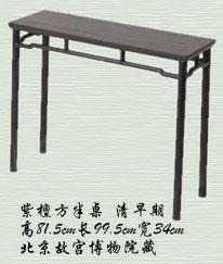 还有一种临时性使用的桌子,它叫“半桌”,这个名字很有意思。半桌是为了拼桌用。古代也有桌子不够用的时候,想让桌子更长一点儿,两个半桌拼一起,就是一个方桌,可以多坐几个人。方形半桌的功能主要是临时性使用。